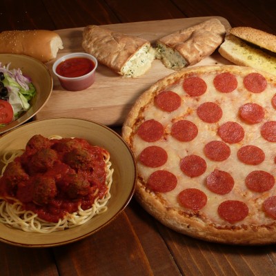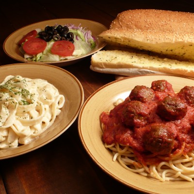 Any 2 Pastas, Large Dinner Salad, Garlic Bread.